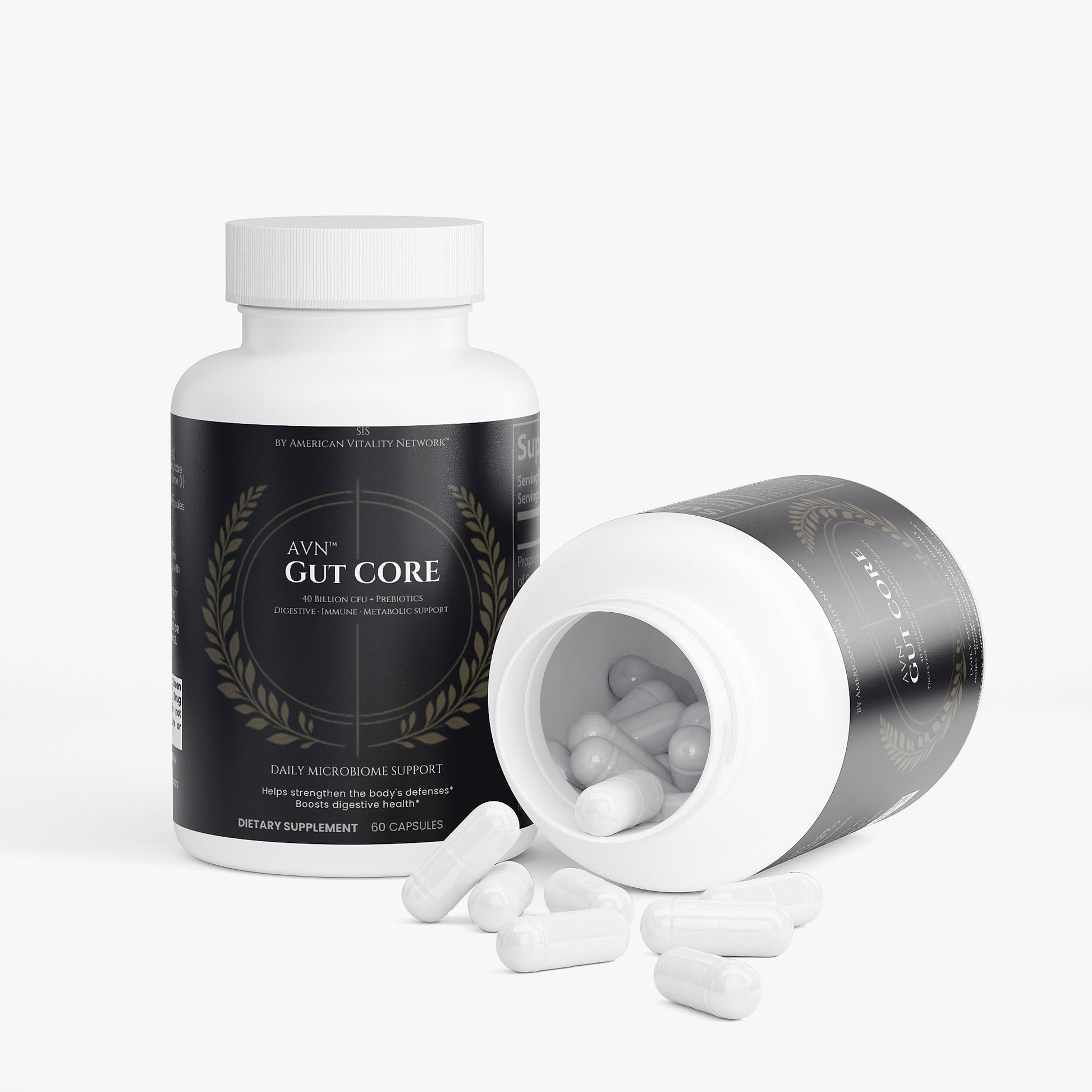 AVN™ Gut Core is a comprehensive probiotic and prebiotic formula designed to support digestive balance, immune resilience, and metabolic health. Featuring 40 billion CFUs from clinically studied probiotic strains, Gut Core helps maintain a healthy gut microbiome and supports optimal nutrient absorption.